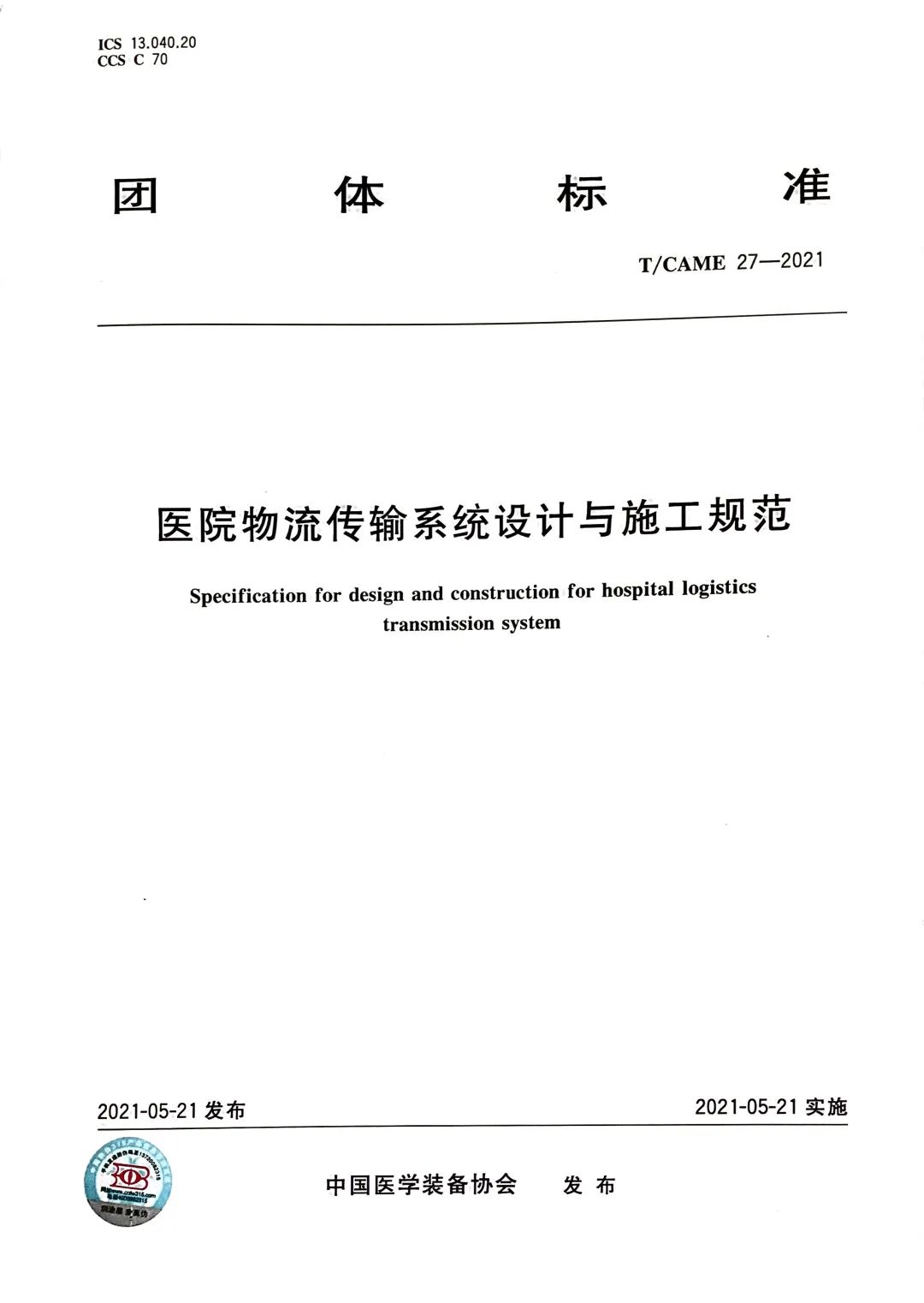 不过,由于我国的医院物流系统建设起步较晚,目前对于医院物流传输系统的设计与施工仍缺乏有效的统一指导标准。于是在这样的背景下,《医院物流传输系统设计与施工规范》团体标准实现了从无到有,从概念提出到付诸实践的初衷,对推动医疗行业规范化、健康化发展必将产生好的影响。