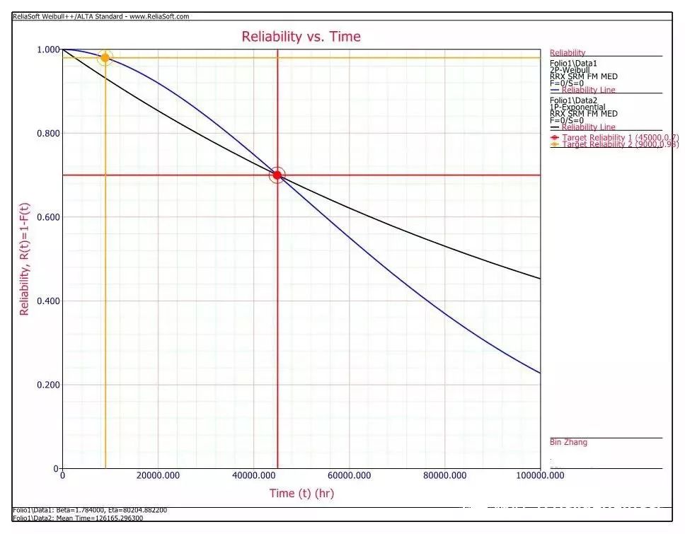 通过上图的对比,可以看出在使用工具设计可靠性测试方案时,尽管寿命目标值一样,但是选择不同的分布类型(考虑了warranty target的两参数威布尔分布)对测试效果还是有显著的区别。